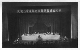 1956年,学院的前身——邮电部石家庄电信学校,伴随着新中国邮电通信事业的起步诞生。几十名干部教师从祖国的四面八方汇聚到石家庄,为新中国的邮电教育事业开疆辟土、艰苦创业。之后,又先后经历了石家庄邮电师范学院、石家庄邮电学院、石家庄邮电学校、河北省邮电学校和石家庄邮电学校等跌宕起伏的发展过程。学校从初创时期的电信学校发展到全国知名的邮电重点中专学校,这是学院建设发展的第一次创业历程。这一时期,学院为祖国邮电通信事业培养了大批优秀人才。